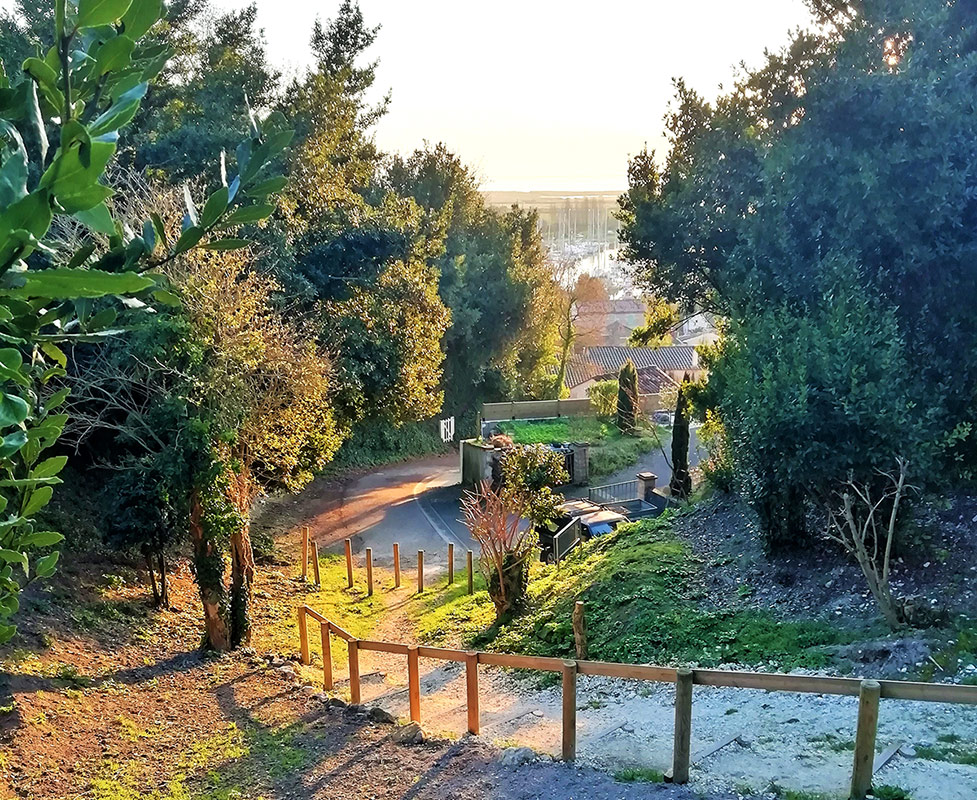 C’est une vraie liaison entre le bourg et la rive, entre le Mortagne d’en haut et le Mortagne d’en bas comme on dit. Il a été aménagé avec des terrasses, des enrochements, des lacets pour atténuer la pente.