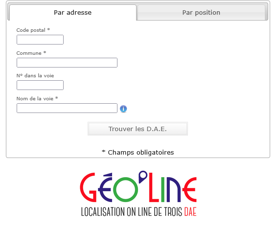 Une fonctionnalité du site de l’Association pour le Recensement et la Localisation des Défibrillateurs (ARLoD) permet de géolocaliser les DAE proches du lieu de premier secours sur une page de géolocalisation des défibrillateurs les plus proches du lieu.
